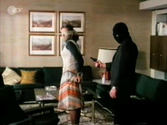Folge 8: "Zeichen der Gewalt" Rechtsanwalt Rieger wird telefonisch aufgefordert, dem Untersuchungs-gefangenen Günter Hausmann eine Pistole ins Gefängnis zu bringen. Rieger muß den Befehlen des Anrufers folgen, da seine Frau in Gewalt von Gangstern ist. Wenig später wird Derrick informiert, daß Hausmann bei einem Ausbruch einen Justizwachtmeister erschossen hat... Darsteller: Horst Tappert (Oberinspektor Derrick), Fritz Wepper (Inspektor Klein), Gaby Dohm (Herta Rieger), Joachim Bissmeier (Dr. Manfred Rieger), Raimund Harmstorf (Günter Hausmann), Sybil Danning (Irina Hausmann), Hilde Berndt (Fräulein Binder), Jan Hendriks (Dreyer), Franz Morak (Pinas), Rudolf Schündler (Max Tolpe), Hermann Lenschau (Kriminalrat), Eric Pohlmann (Palm), Fritz Strassner (Herr Pleitgen), Hilde Volk (Frau Groscher), Hannes Kaetner (Parkwächter), Günther Heider (Verkehrspolizist), Agather Nguyen (Kind) und andere Regie: Theodor Grädler Erstausstrahlung: 04.05.1975 (ZDF) Produktionsstab: Musik: Hans-Martin Majewski, Kamera: Manfred Ensinger/Jürgen Schoenemann, Aufnahmeleitung: Hartmut Koldewey, Szenenbild: Wolf Englert, Produzent: Helmut Ringelmann, Eine Produktion der Telenova Fernsehproduktion im Auftrag von ZDF, ORF, SRG | |||||||||||||||||||||||||||||||||||||||||||||||||||||||||||||||||